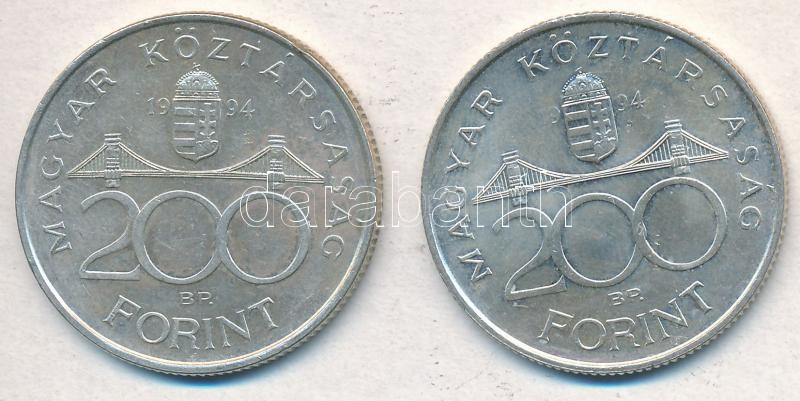 1994. 200Ft Ag "Deák" (2x) T:2 https://www.darabanth.com/de/304-Fernauktion/304.0/Numismatik/Ungarische-Munzen-und-Munzen-mit-ungarischem-Munzzeichen~500008/1994-200Ft-Ag-Deak-2x-T2~II1640035