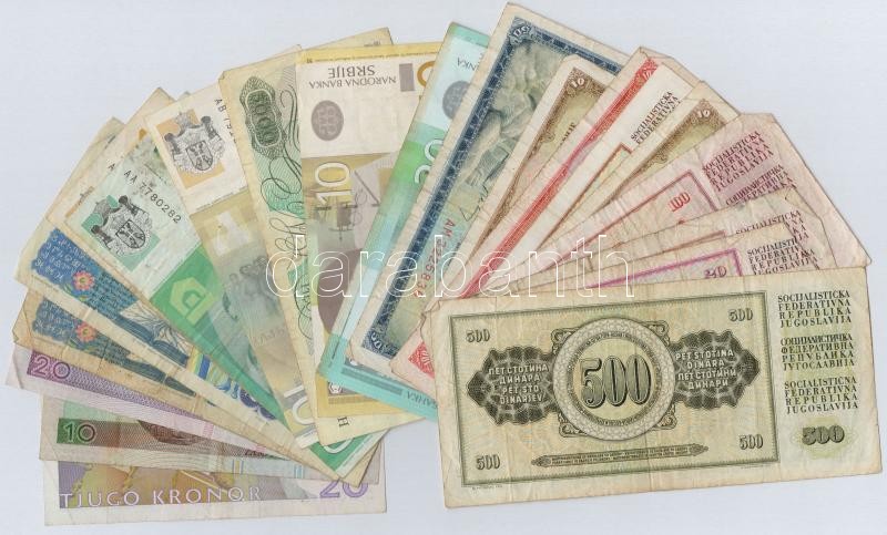 21db-os vegyes külföldi bankjegy tétel, közte Csehszlovákia, Jugoszlávia, Lengyelország, Svédország T:III,III-