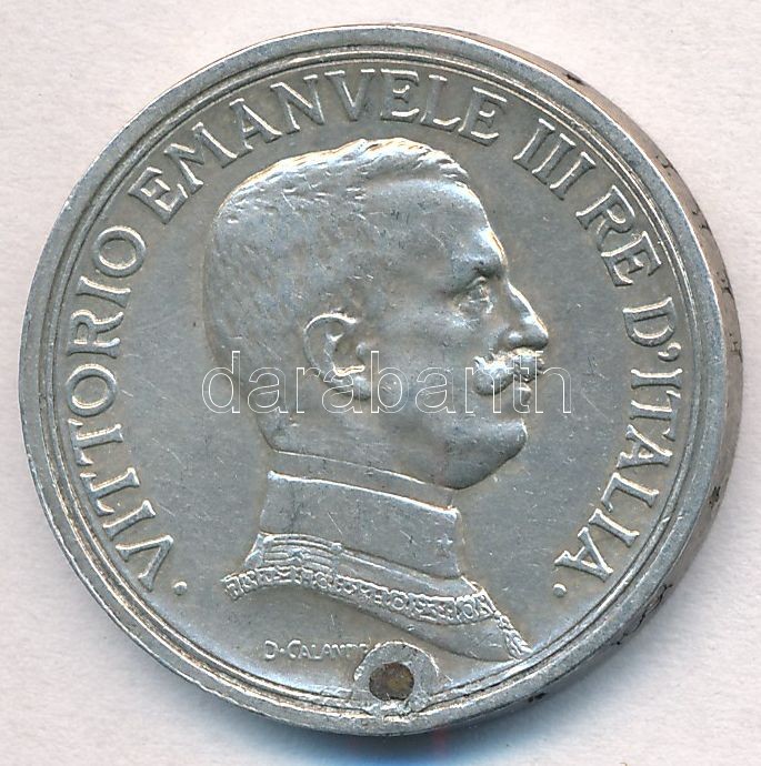 Beschreibung: Olaszország 1915R 2L Ag "III. Viktor Emánuel" T:2-,3 lyuktömött