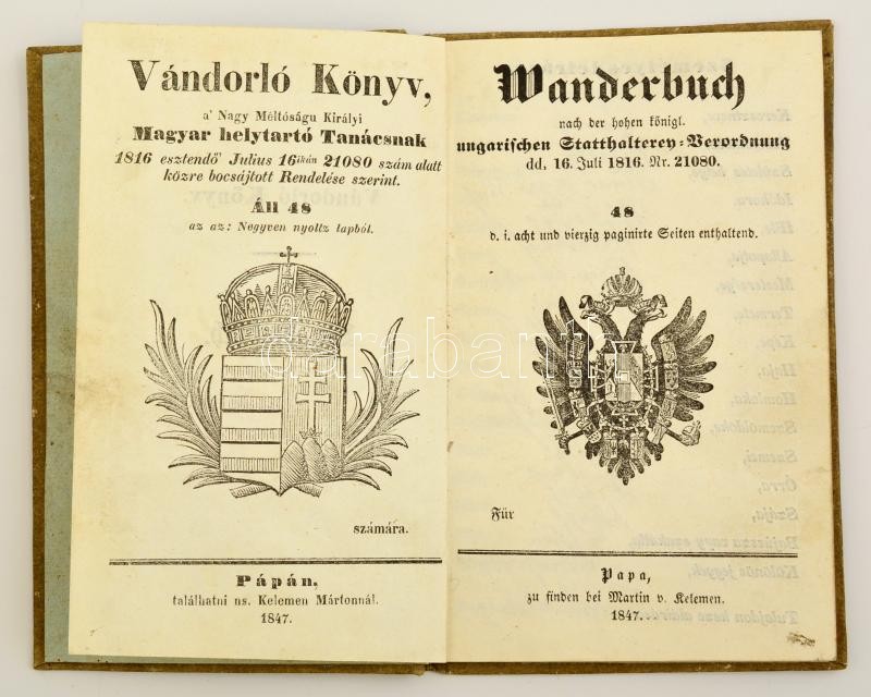 1849 Vándorkönyv magyar csizmadia részére belül jó állapotban, néhány ... https://www.darabanth.com/de/305-Fernauktion/305.0/Andere-Sammelgebiete/Dokument~300029/1849-Vandorkonyv-magyar-csizmadia-reszere-belul-jo-allapotban-nehany-magyar-nyelvu-bejeg~II1648057