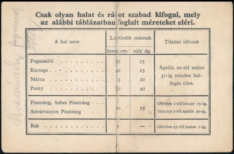 1934 Budapesti lakos számára kiállított halászjegy 5 P okmánybélyeggel... https://www.darabanth.com/de/305-Fernauktion/305.0/Andere-Sammelgebiete/Dokument~300029/1934-Budapesti-lakos-szamara-kiallitott-halaszjegy-5-P-okmanybelyeggel-fishing-ticket~II1636822