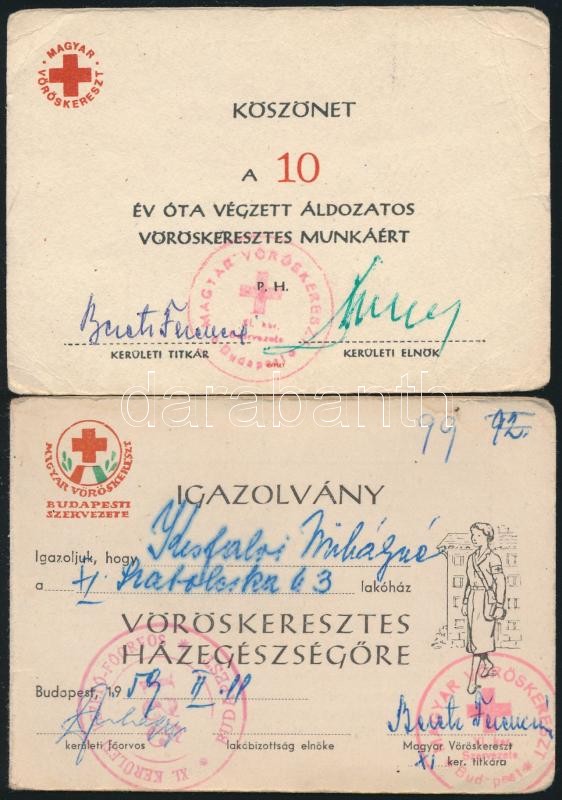 cca 1950 4 db Vöröskeresztes igazolvány https://www.darabanth.com/de/305-Fernauktion/305.0/Andere-Sammelgebiete/Dokument~300029/cca-1950-4-db-Voroskeresztes-igazolvany~II1647565