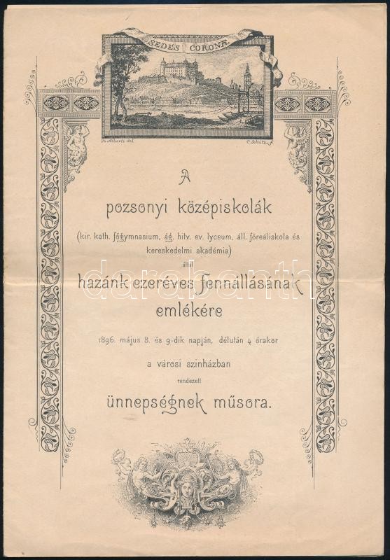 1896 A pozsonyi középiskolák által a millennium emlékére rendezett ünn... https://www.darabanth.com/de/305-Fernauktion/305.0/Andere-Sammelgebiete/Drucksachen~300027/1896-A-pozsonyi-kozepiskolak-altal-a-millennium-emlekere-rendezett-unnepsegek-musora-Pozso~II1645357