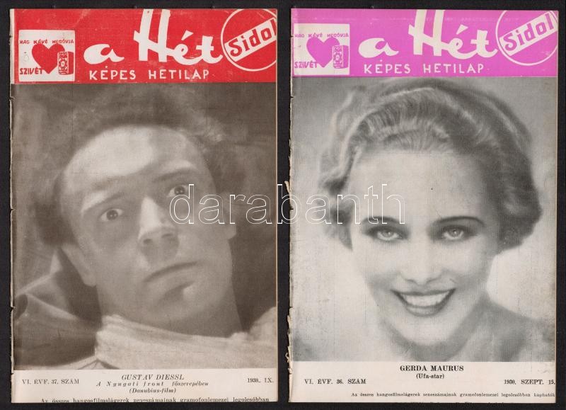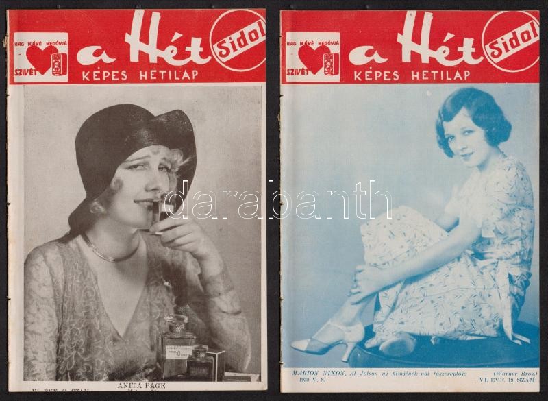 1930 A Hét, Képes Hetilap 4 db száma (19, 21, 36, 37) https://www.darabanth.com/de/305-Fernauktion/305.0/Andere-Sammelgebiete/Drucksachen~300027/1930-A-Het-Kepes-Hetilap-4-db-szama-19-21-36-37~II1646721