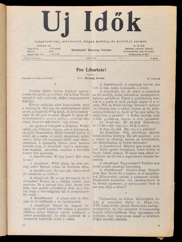 1936 Uj Idők. XLII. évfolyam. I-II. félév. (Teljes.) Szerk.: Herczeg F... https://www.darabanth.com/de/305-Fernauktion/305.0/Andere-Sammelgebiete/Drucksachen~300027/1936-Uj-Idok-XLII-evfolyam-I-II-felev-Teljes-Szerk-Herczeg-Ferenc-Kiadoi-egeszvasz~II1645842
