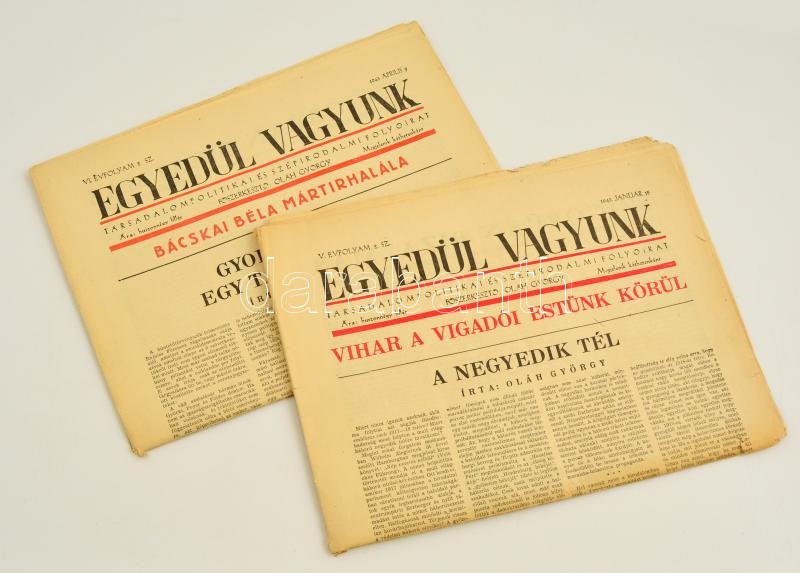 1943 Az Egyedül Vagyunk társadalompolitikai és szépirodalmi folyóirat ... https://www.darabanth.com/de/305-Fernauktion/305.0/Andere-Sammelgebiete/Drucksachen~300027/1943-Az-Egyedul-Vagyunk-tarsadalompolitikai-es-szepirodalmi-folyoirat-2-szama-jan-15-apr~II1644291