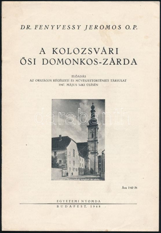 Dr. Fenyvessy Jeromos: A kolozsvári Ősi Domonkos-zárda. Bp., 1948. Egy... https://www.darabanth.com/de/305-Fernauktion/305.0/Andere-Sammelgebiete/Drucksachen~300027/Dr-Fenyvessy-Jeromos-A-kolozsvari-Osi-Domonkos-zarda-Bp-1948-Egyetemi-nyomda-8p~II1645795