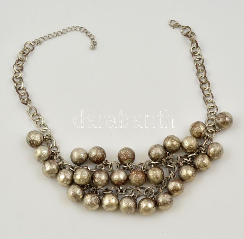 Ezüstszínű golyókkal díszített fém bizsu nyaklánc, h: 45 cm https://www.darabanth.com/de/305-Fernauktion/305.0/Andere-Sammelgebiete/Flohmarkt~300011/Ezustszinu-golyokkal-diszitett-fem-bizsu-nyaklanc-h-45-cm~II1594509