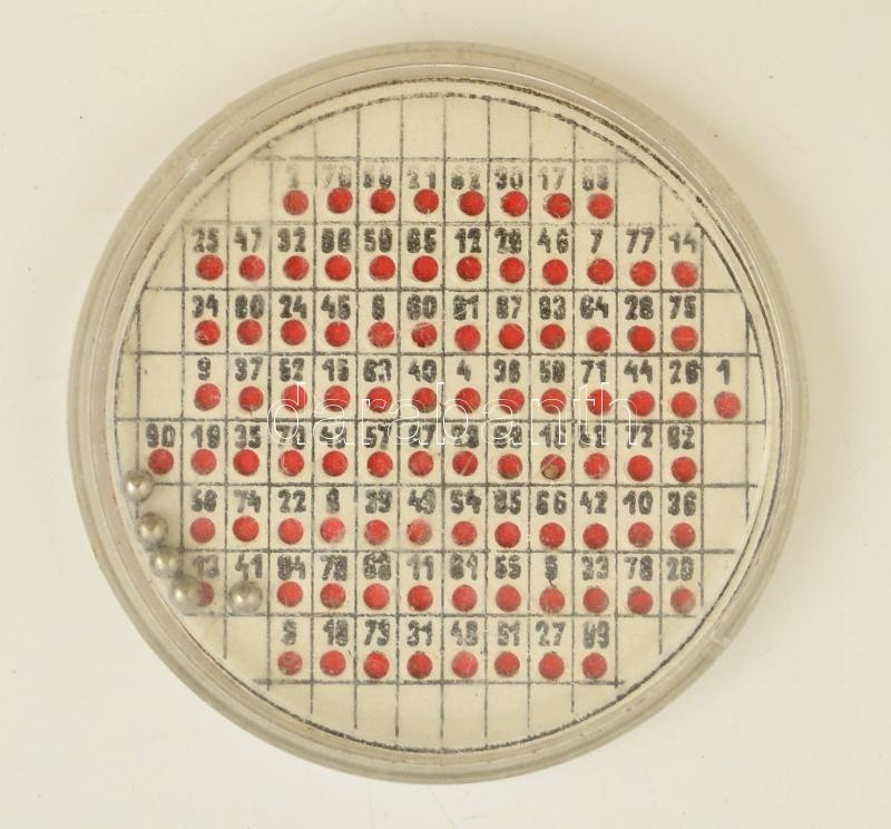 Golyós számsorsoló, retró lottó ajándéktárgy, hátoldalán reklámmal, d:... https://www.darabanth.com/de/305-Fernauktion/305.0/Andere-Sammelgebiete/Flohmarkt~300011/Golyos-szamsorsolo-retro-lotto-ajandektargy-hatoldalan-reklammal-d6-5-cm~II1645181