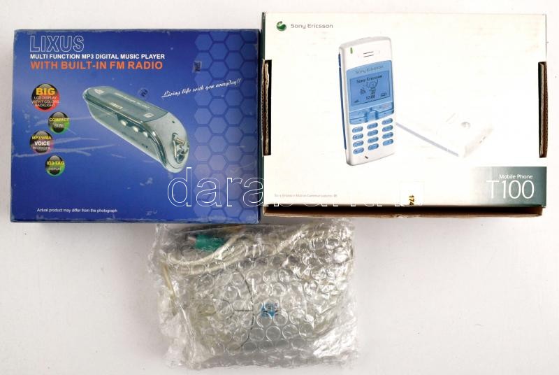 Kis vegyes műszaki tétel: Sony Ericsson T100 mobiltelefon, jó állapotban, saját dobozában, töltővel, leírással + A4 Tech görgős egér + Lixus mp3-lejátszó, saját dobozában, töltővel