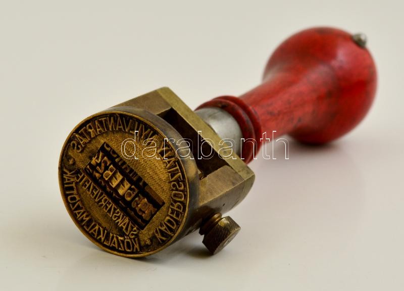 Beschreibung: "Közalkalmazottak Szakszervezete - káderosztály nyilvántartás", fém dátumbélyegző fa nyéllel, m: 13 cm