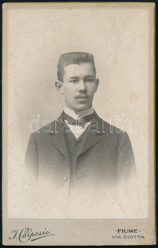 1907 Fiatal férfi portréja a fiumeei Ilario Carposio műterméből 7x11 c... https://www.darabanth.com/de/305-Fernauktion/305.0/Andere-Sammelgebiete/Foto~300030/1907-Fiatal-ferfi-portreja-a-fiumeei-Ilario-Carposio-mutermebol-7x11-cm~II1648393