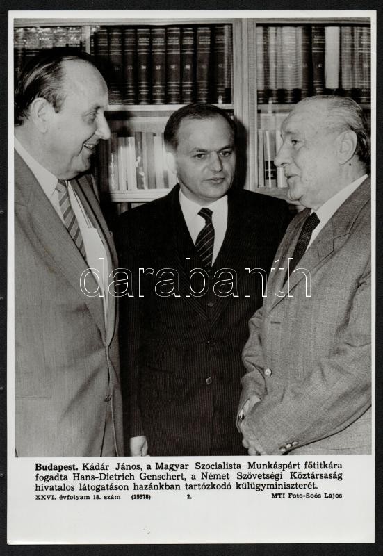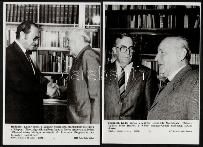 1969-1985 Kádár János külföldi politikusokat fogad, 3 db MTI fotó, 27x... https://www.darabanth.com/de/305-Fernauktion/305.0/Andere-Sammelgebiete/Foto~300030/1969-1985-Kadar-Janos-kulfoldi-politikusokat-fogad-3-db-MTI-foto-27x18-cm-plus-Orszag-vilag-m~II1641504
