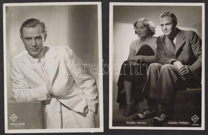 cca 1940 10 db eredeti UFA fotó német színészekkel: Paul Kemp, Carola Höhn. Heil Finkenzeller, Maria Eggerth, Viktor Staal, Brigitte Horney, Gustav Frölich, , Lilian Harvey, Willy Birgel / 10 original photos of German actors 24x18 cm