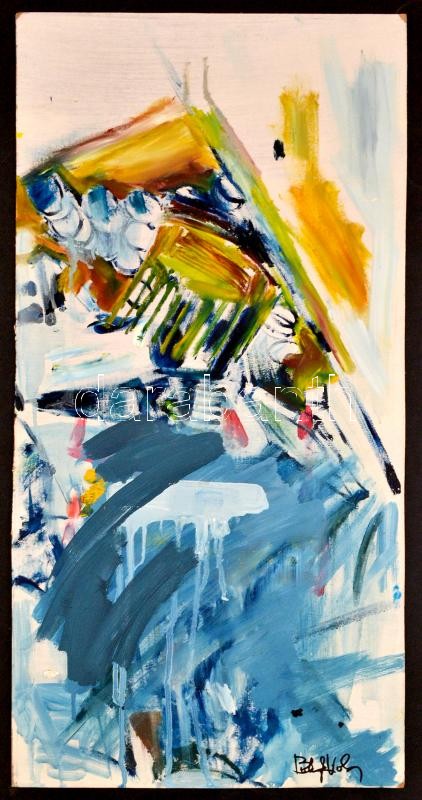 Beschreibung: Bolyki Viola (1977- ): Káosz, olaj, farost, jelzett, 80×40,5 cm