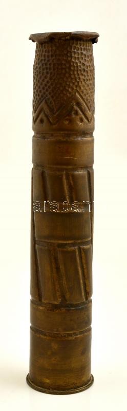 Töltényhüvelyből készült díszes váza, m: 28,5 cm https://www.darabanth.com/de/305-Fernauktion/305.0/Andere-Sammelgebiete/Militaria~300025/Toltenyhuvelybol-keszult-diszes-vaza-m-28-5-cm~II1641734