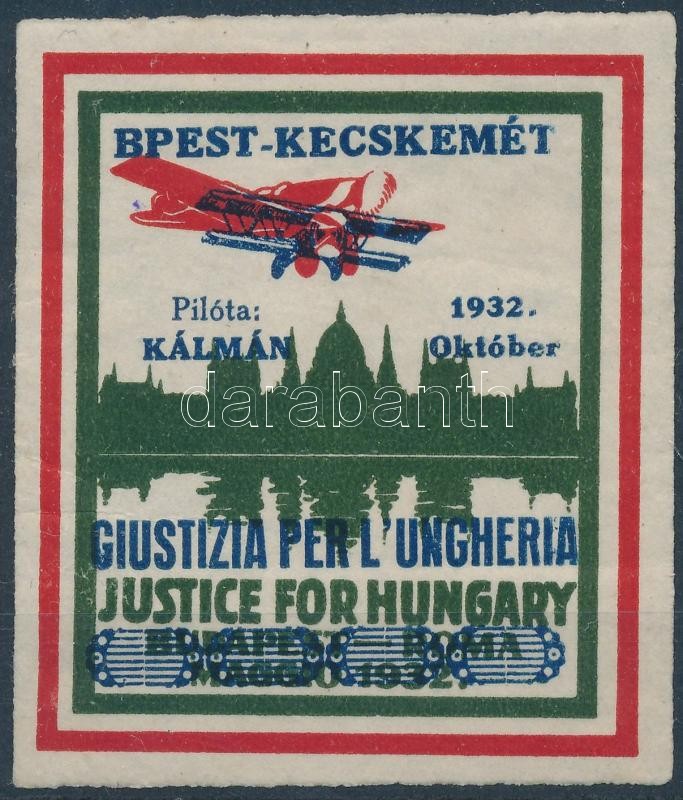Beschreibung: 1932 Justice for Hungary légiposta levélzáró