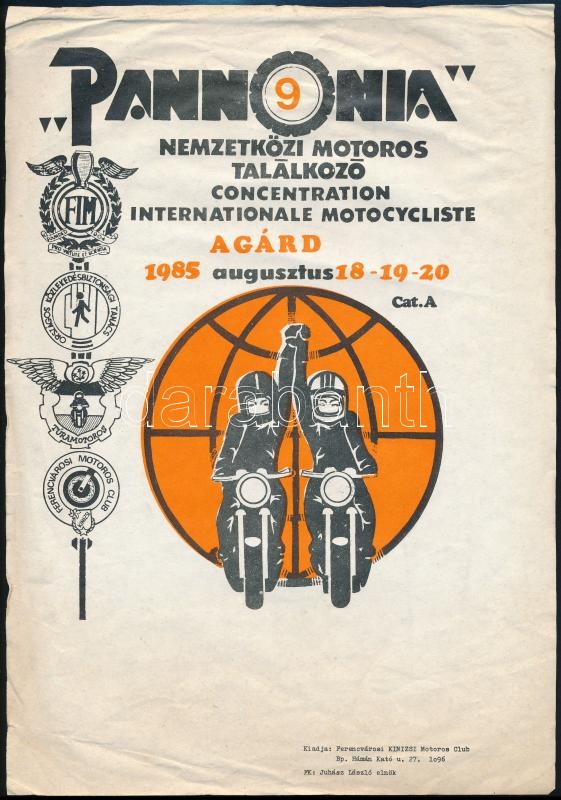 1985 9. Pannónia nemzetközi motoros találkozó, plakát, 29×20,5 cm https://www.darabanth.com/de/305-Fernauktion/305.0/Andere-Sammelgebiete/Poster~300028/1985-9-Pannonia-nemzetkozi-motoros-talalkozo-plakat-29C39720-5-cm~II1645445