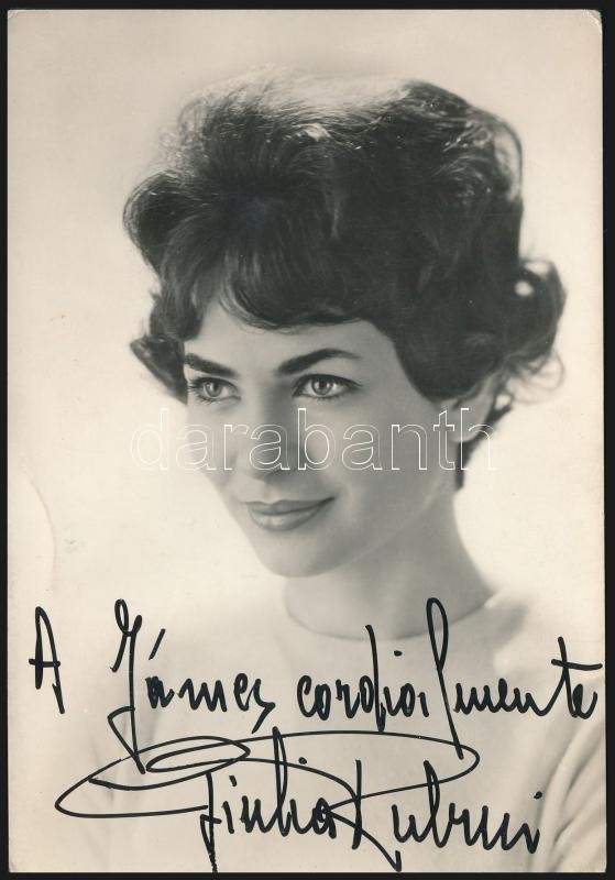 Beschreibung: Giulia Rubini (1935- ) olasz színésznő aláírása őt magát ábrázoló fotón