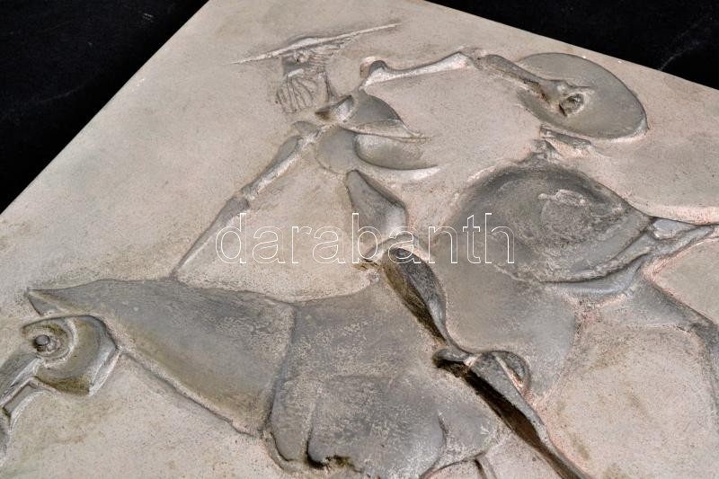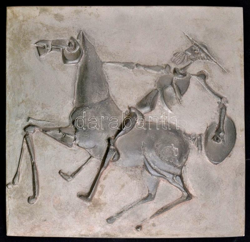 Beschreibung: Don Quijote de la Mancha, festett gipsz falikép, jelzés nélkül, 42×43 cm