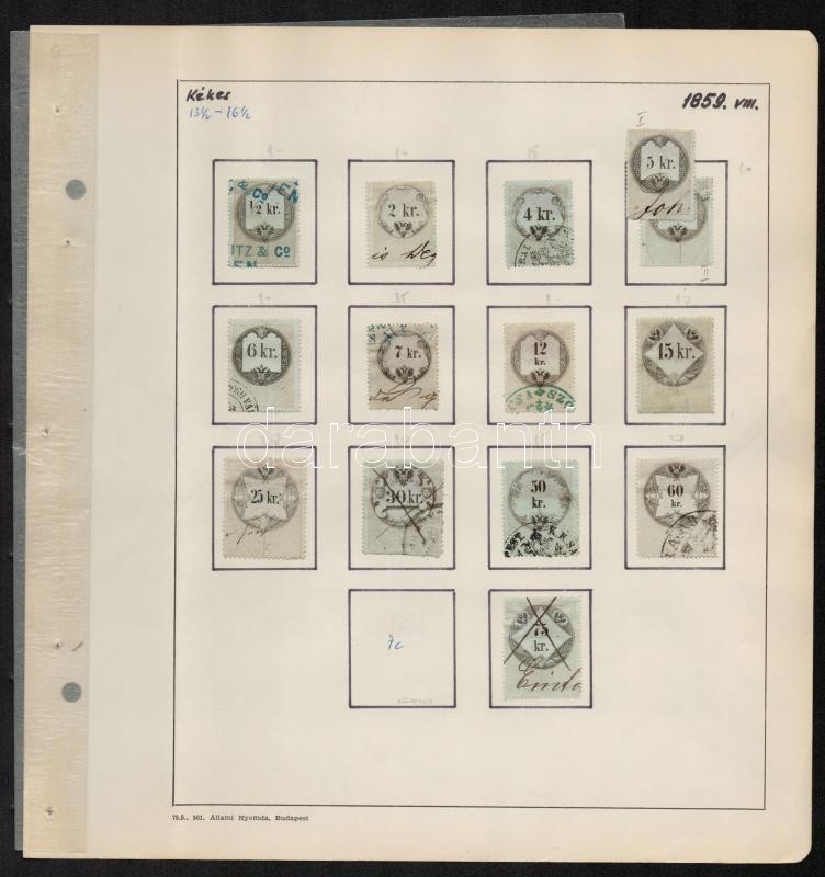 1859 magyar/osztrák okmánybélyeg hiányos sor https://www.darabanth.com/de/305-Fernauktion/305.0/Andere-Sammelgebiete/Stempelmarken~300015/1859-magyarosztrak-okmanybelyeg-hianyos-sor~II1644369
