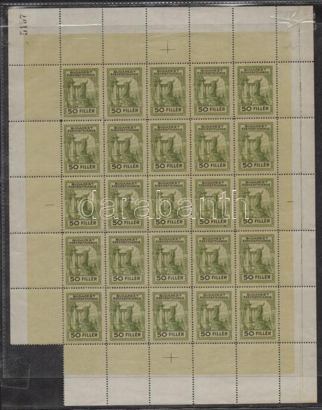 Beschreibung: 1927 Budapest Székesfőváros 50f okmánybélyeg ív, 5197 sorszámmal (ívsarok hiány)