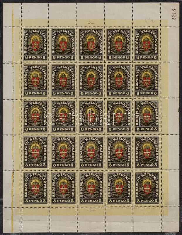 Beschreibung: 1927 Budapest-Székesfőváros 8P teljes ív, 2718 sorszámmal