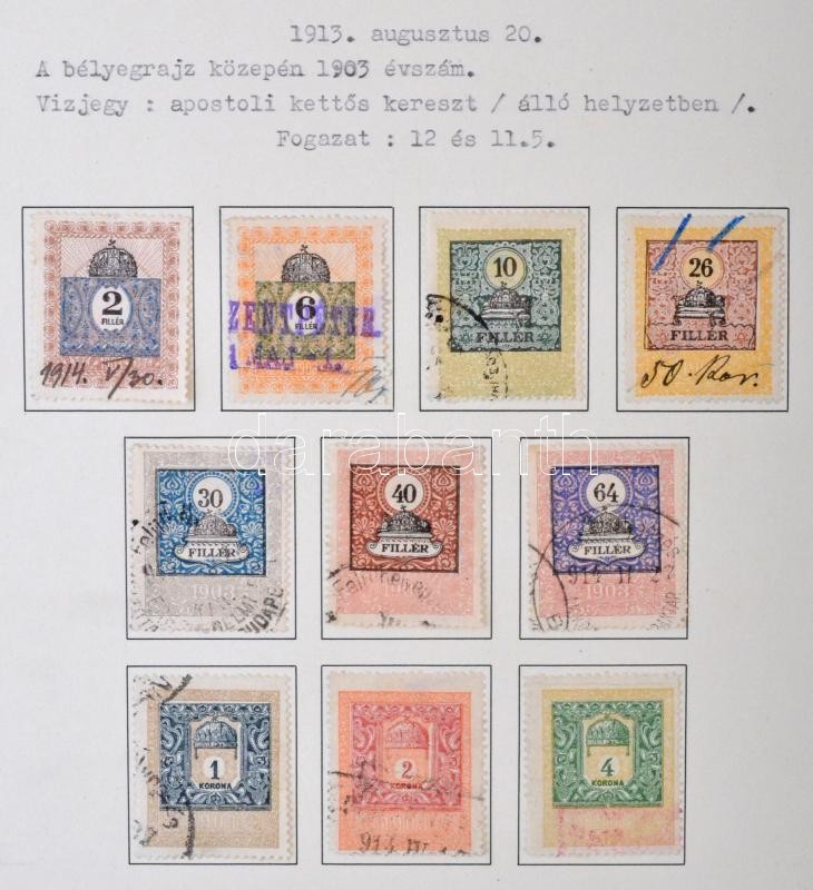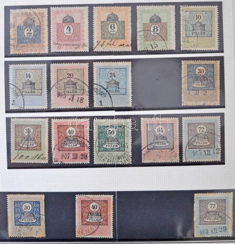 Okmánybélyeg gyűjtemény 87 lapon 1903-1914 https://www.darabanth.com/de/305-Fernauktion/305.0/Andere-Sammelgebiete/Stempelmarken~300015/Okmanybelyeg-gyujtemeny-87-lapon-1903-1914~II1649058
