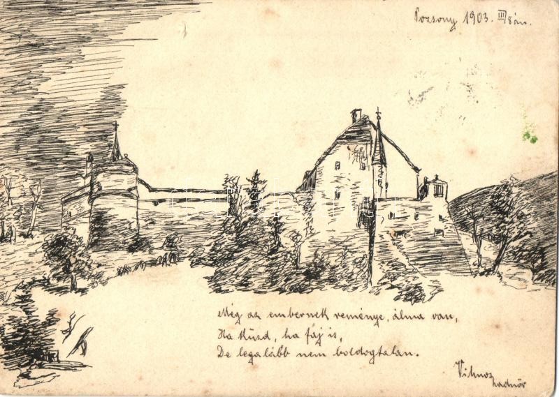 Beschreibung: 1903 Pozsony, Pressburg, Bratislava; vár, saját kézzel rajzolt lap / castle, hand-drawn art postcard