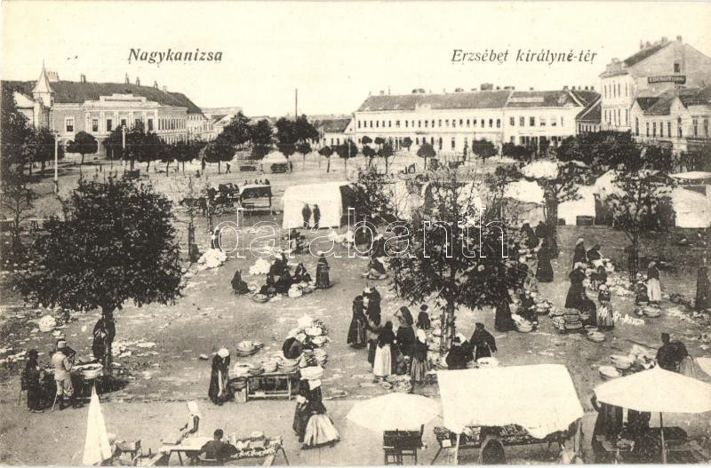 Nagykanizsa, Erzsébet királyné tér, piac, árusok (EK) https://www.darabanth.com/de/305-Fernauktion/305.0/Ansichtskarten/Ungarn~100006/Nagykanizsa-Erzsebet-kiralyne-ter-piac-arusok-EK~II1645510