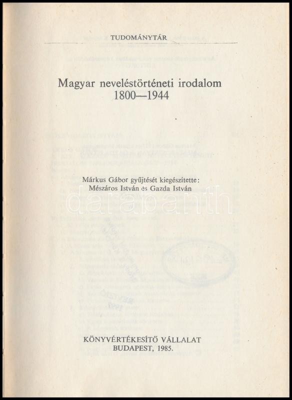 Magyar neveléstörténeti irodalom 1800-1944. Márkus Gábor gyűjtését kie... https://www.darabanth.com/de/305-Fernauktion/305.0/Bucher/Bucher-Andere-kuriositaten~400016/Magyar-nevelestorteneti-irodalom-1800-1944-Markus-Gabor-gyujteset-kiegeszitette-Meszaro~II1647067