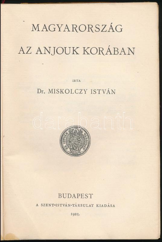 Miskolczy István: Magyarország az Anjouk korában. Szent István Könyvek... https://www.darabanth.com/de/305-Fernauktion/305.0/Bucher/Bucher-Geschichte~400004/Miskolczy-Istvan-Magyarorszag-az-Anjouk-koraban-Szent-Istvan-Konyvek-9-Bp-1923-Szent-IstvC3~II1642328