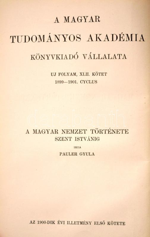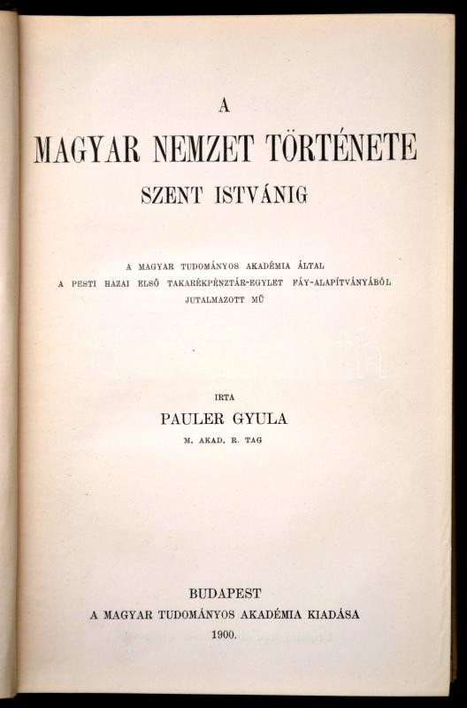 Pauler Gyula: A magyar nemzet története Szent Istvánig. Bp., 1900, MTA... https://www.darabanth.com/de/305-Fernauktion/305.0/Bucher/Bucher-Geschichte~400004/Pauler-Gyula-A-magyar-nemzet-tortenete-Szent-Istvanig-Bp-1900-MTA-Kiadoi-aranyozott-gerinc~II1642269