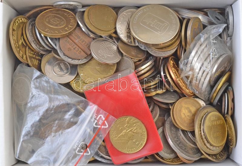 Beschreibung: Vegyes emlékérem, játékpénz, zseton és bárca tétel 2,59kg súlyban T:vegyes