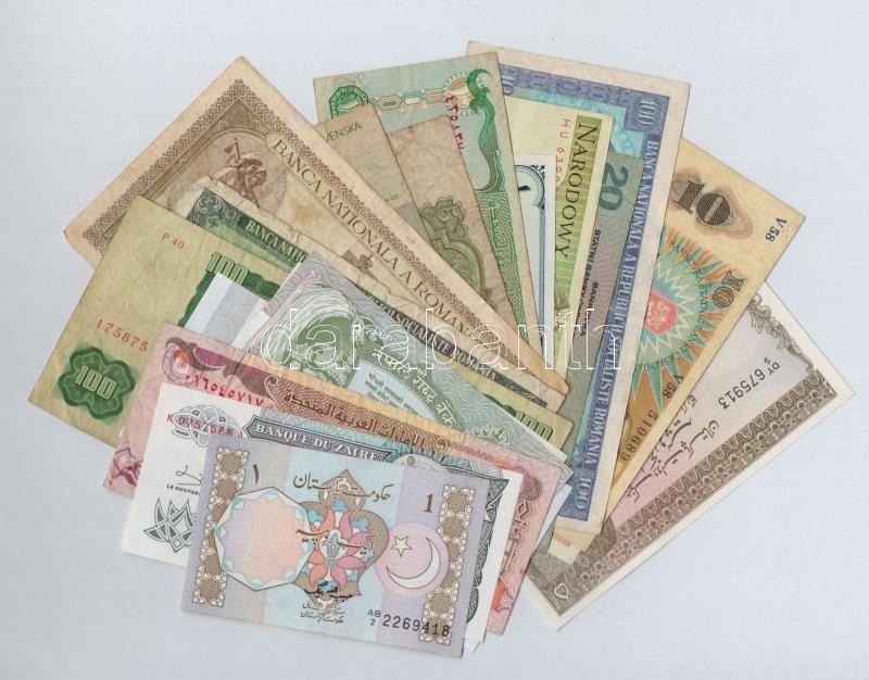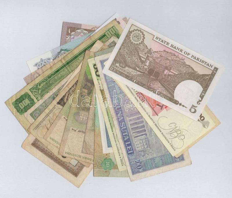 21db-os vegys külföldi bankjegy tétel, benne Pakisztán, Zaire, Egyesült Arab Emirátusok, Nepál, Mianmar, Kambodzsa, Csehszlovákia, Románia, Lengyelország, Szlovákia T:II-III- 21pcs of various banknotes, including Pakistan, Zaire, United Arab Emirates, Nepal, Myanmar, Cambodia, Czechoslovakia, Romania, Poland, Slovakia C:XF-VG