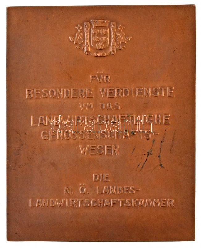 Ausztria DN "Minister u. Staatssekretär a. d. Ökonomierat - Rudolf Buchinger / Für besondere verdienste um das Landwirtschaftliche Genossenschaftswesen" Br plakett (76x94mm) T:2