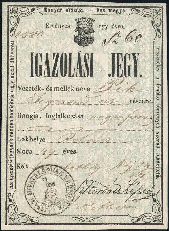 1861 Igazolási jegy rohonci lakos részére / German-Hungarian ID for Re... https://www.darabanth.com/de/306-Fernauktion/306.0/Andere-Sammelgebiete/Dokument~100019/1861-Igazolasi-jegy-rohonci-lakos-reszere-German-Hungarian-ID-for-Reichnitz-trader~II1626031