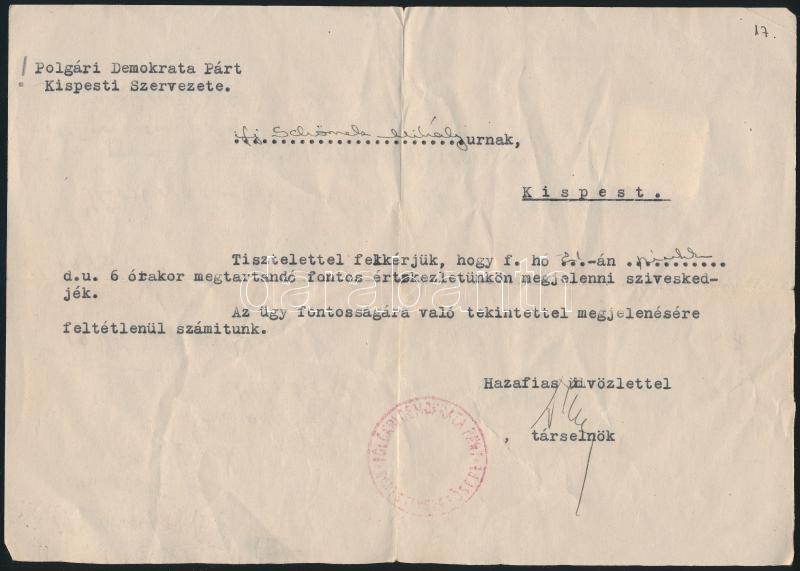 1945 A Polgári Demokrata Párt Kispesti Szervezetének levele inflációs ... https://www.darabanth.com/de/306-Fernauktion/306.0/Andere-Sammelgebiete/Dokument~100019/1945-A-Polgari-Demokrata-Part-Kispesti-Szervezetenek-levele-inflacios-belyeggel~II1652591