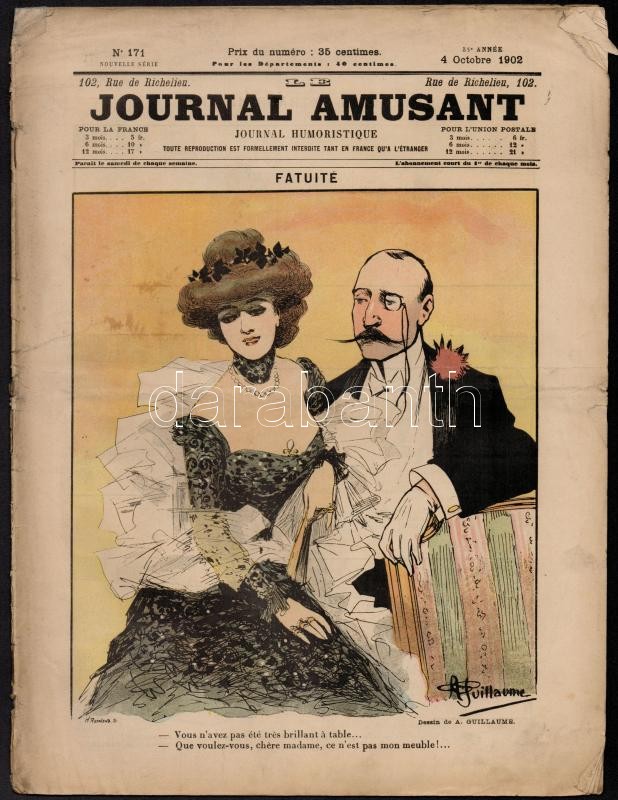 1902 Journal Amusant No. 171, journal humoristique - francia nyelvű vi... https://www.darabanth.com/de/306-Fernauktion/306.0/Andere-Sammelgebiete/Drucksachen~100030/1902-Journal-Amusant-No-171-journal-humoristique--francia-nyelvu-vicclap-illusztraciokkal-16~II1653196