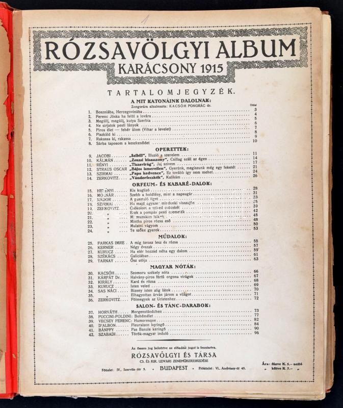 1915 Rózsavölgyi Album Karácsony 1915, kotta, Bp., Rózsavölgyi. Vászon... https://www.darabanth.com/de/306-Fernauktion/306.0/Andere-Sammelgebiete/Drucksachen~100030/1915-Rozsavolgyi-Album-Karacsony-1915-kotta-Bp-Rozsavolgyi-Vaszonkotesben-megviselt-a~II1657368