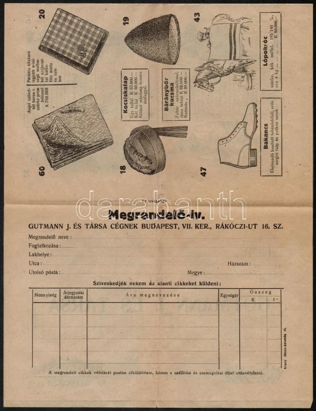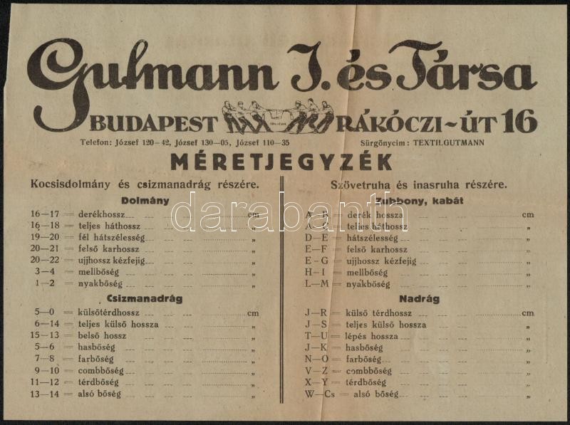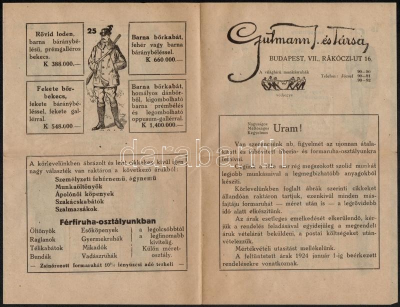 1923 Bp., Gutmann J. és Társa divatáruházának képes árjegyzéke, boríté... https://www.darabanth.com/de/306-Fernauktion/306.0/Andere-Sammelgebiete/Drucksachen~100030/1923-Bp-Gutmann-J-es-Tarsa-divataruhazanak-kepes-arjegyzeke-boritekkal~II1652739