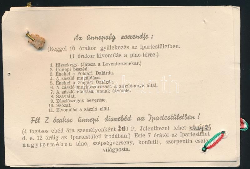 Beschreibung: 1941 Nagykálló és Vidéke Ipartestület meghívó 50 éves jubileumra, fém címerrel, 11x16 cm
