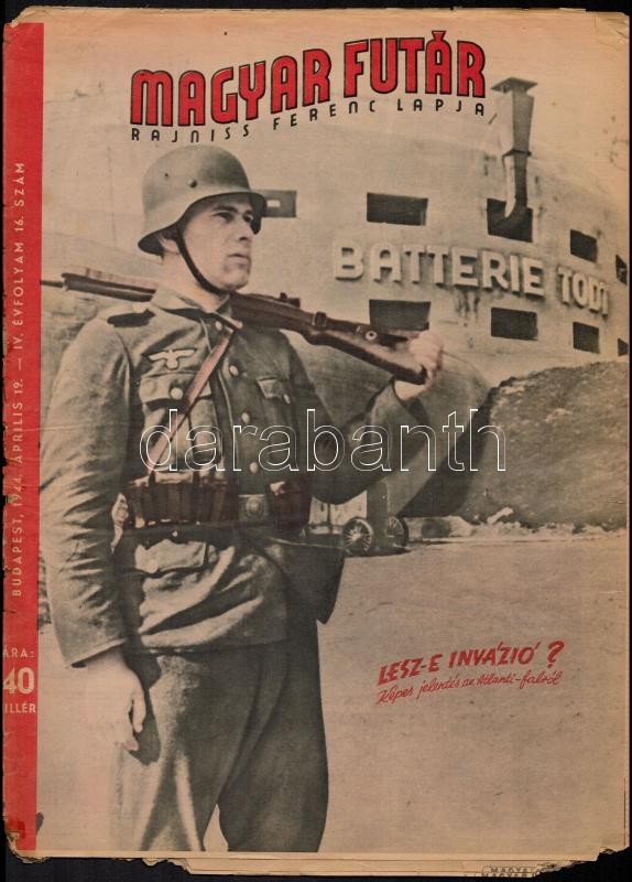 1944 Bp., A Magyar Futár, Rajniss Ferenc lapja IV. évfolyamának 16. sz... https://www.darabanth.com/de/306-Fernauktion/306.0/Andere-Sammelgebiete/Drucksachen~100030/1944-Bp-A-Magyar-Futar-Rajniss-Ferenc-lapja-IV-evfolyamanak-16-szama-kis-hiannyal~II1653205