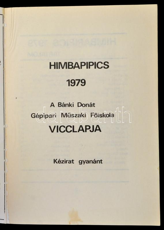 1979 Himbapipics 1979. A Bánki Donát Gépipari Műszaki Főiskola vicclap... https://www.darabanth.com/de/306-Fernauktion/306.0/Andere-Sammelgebiete/Drucksachen~100030/1979-Himbapipics-1979-A-Banki-Donat-Gepipari-Muszaki-Foiskola-vicclapja-Bp-Fovarosi-Nyomd~II1650768