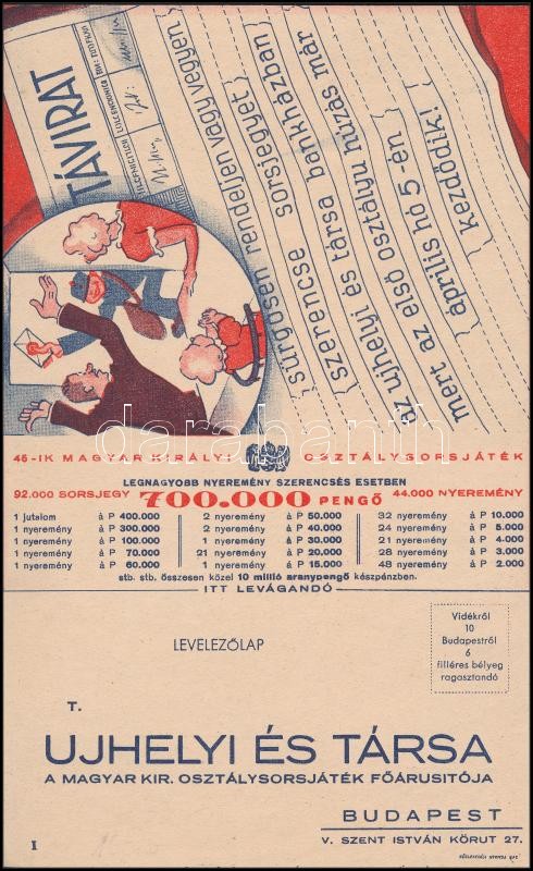 Beschreibung: cca 1930 Ujhelyi és Társa szórólapja a 46. Magyar Királyi Osztálysorsjátékról