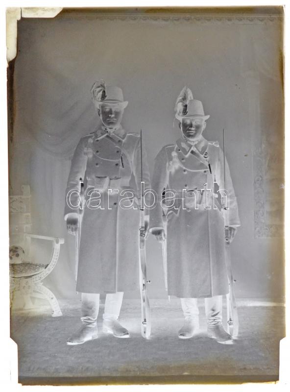 Beschreibung: cca 1920 Csendőrök teljes felszerelésben, vintage üveglemez negatív, 12x16 cm