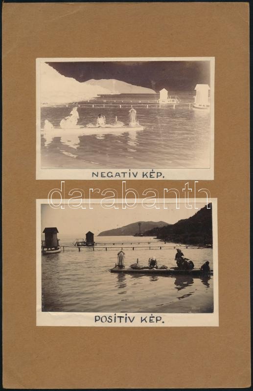 cca 1920 Negatív és pozitív kép, jelzés nélküli vintage fotóművészeti alkotás Kerny István (1879-1963) budapesti fotóművész hagyatékából, kép 7x10,5 cm, karton 24x15,5 cm