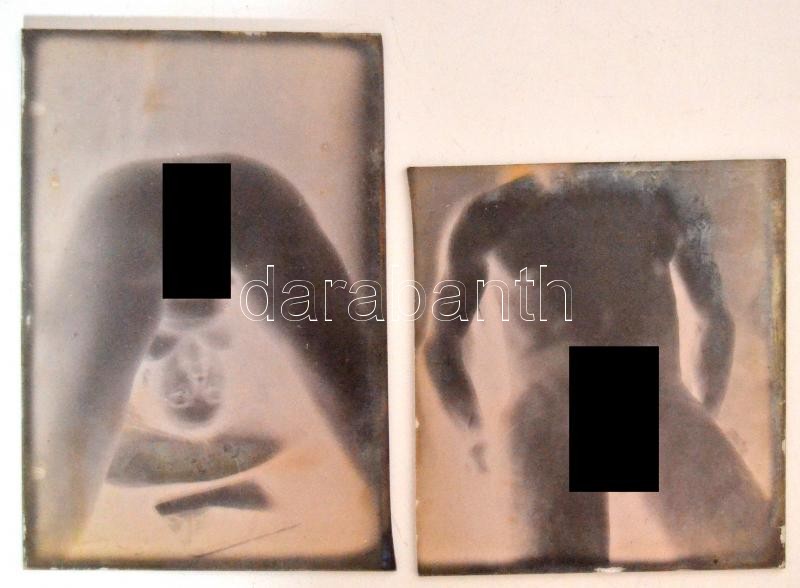 Beschreibung: cca 1920 Pornó felvételek, 2 db vintage üveglemez negatív, 9x12 cm