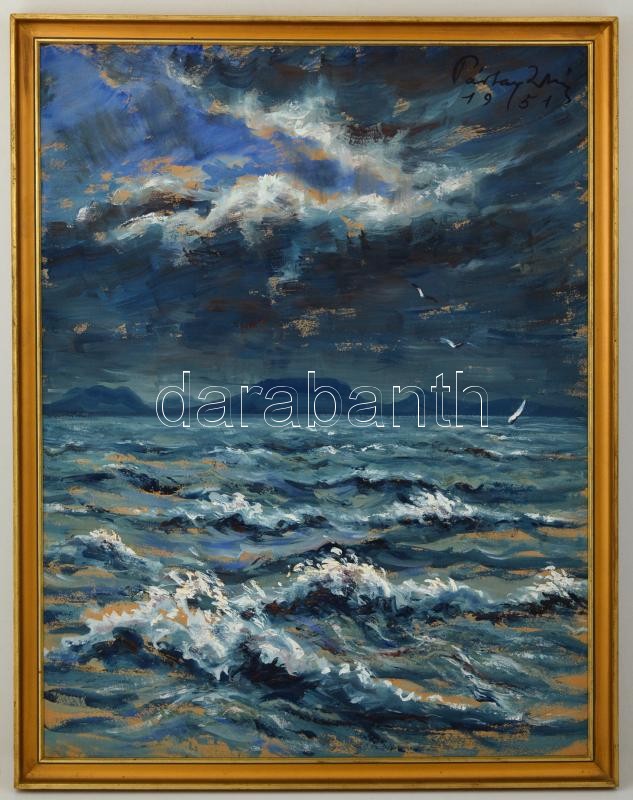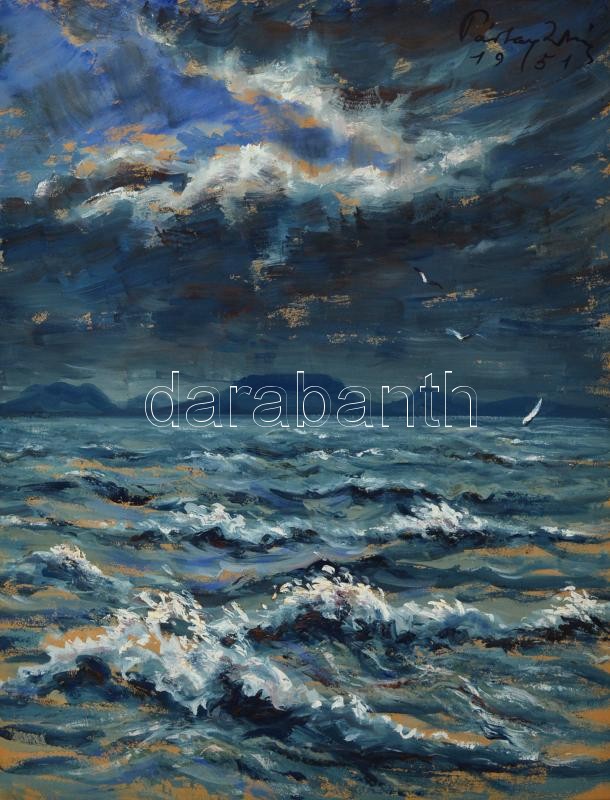 Beschreibung: Pártay István (1906-1979): Vihar a Balatonon (Balatonfenyves) 1951. Tempera, papír, jelzett, keretben, 91×70 cm