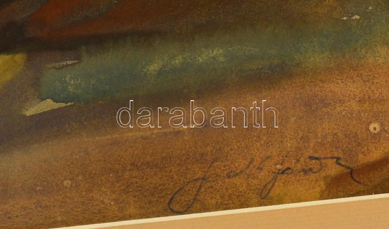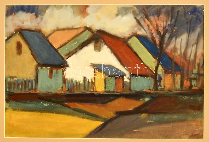 Beschreibung: Szabó jelzéssel: Házsor, akvarell, papír, paszpartuban, 29×42 cm